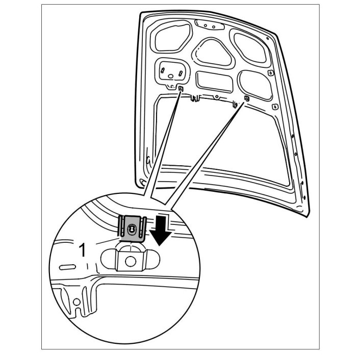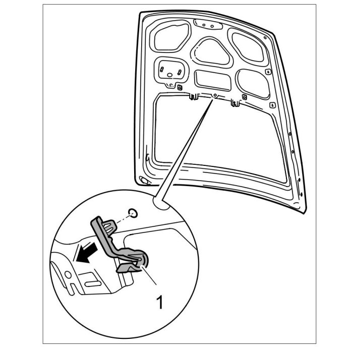 1. Remove trim panel for rear lid. -> 708719 Removing and installing trim panel for rear lid - section on "Removing" 708719 Removing and installing trim panel for rear lid