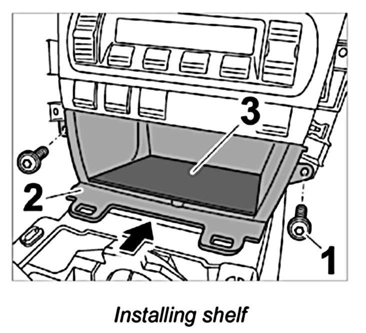 1. Position shelf -2- and screw down using the fastening screws -1-.