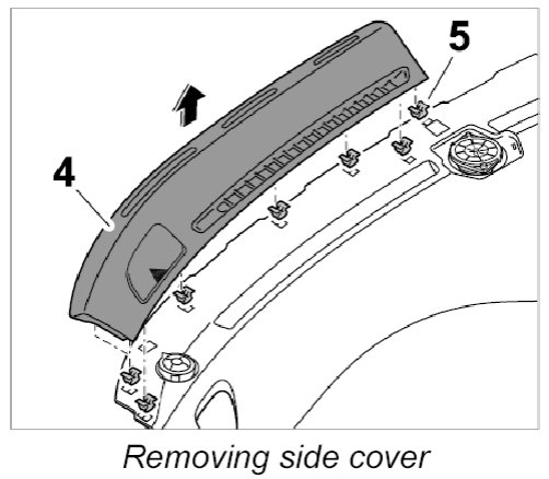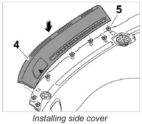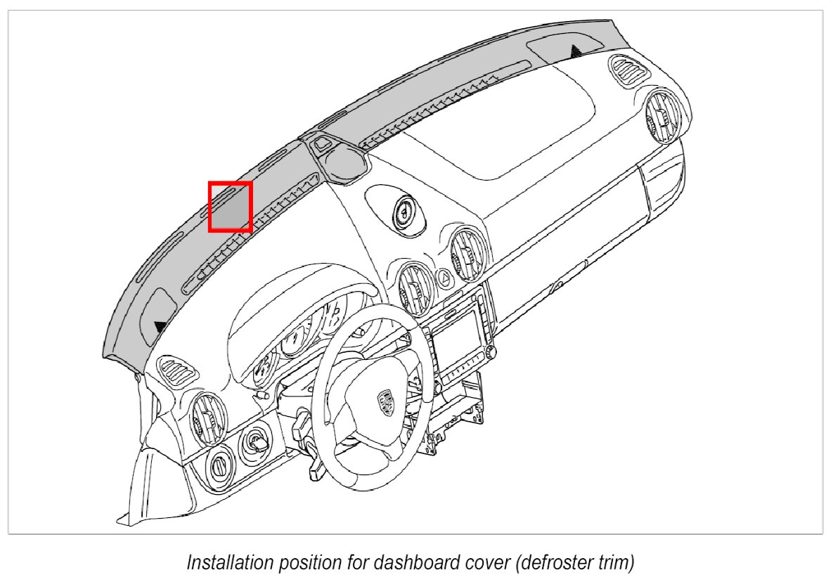 2. Clip cover for dashboard (defroster trim) into place on left and right -4-.