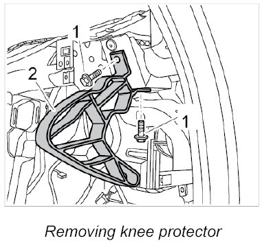 1. Unscrew fastening screws -1- and remove knee protector -2-.