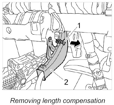 2. Push out fixing clip -1- and unclip length compensation -2-.