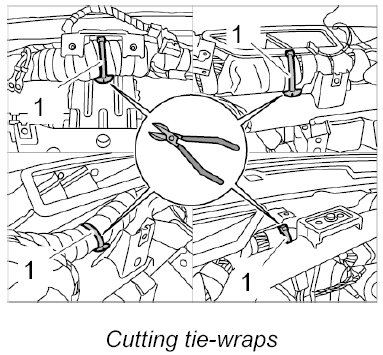 14. Tighten fastening nuts -1- close to the plenum panel. Tightening torque: 23 Nm (17 ftlb.)