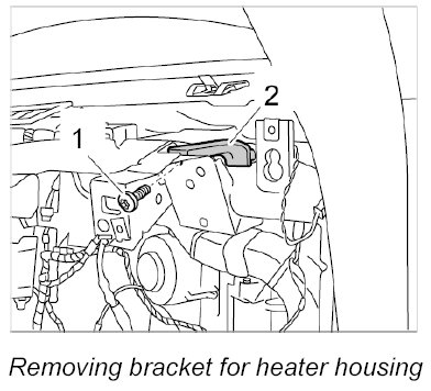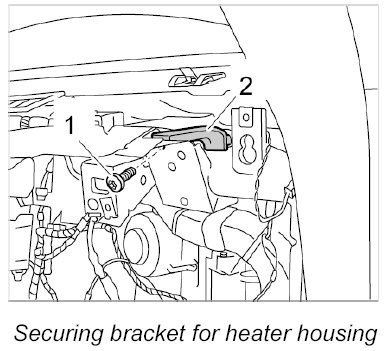 5. Unscrew fastening screw -1- on bracket for heater housing -2-.