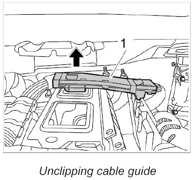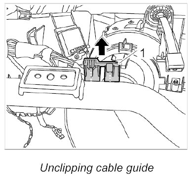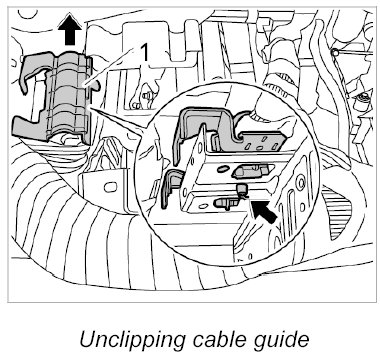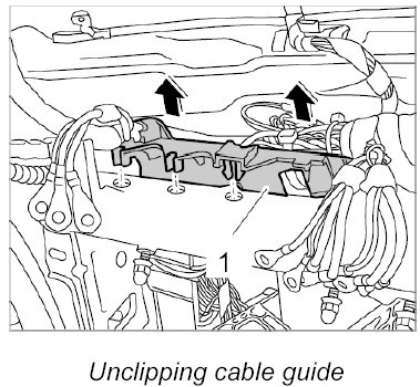 11. Unclip cable guide -1- on dashboard support from below -Inset-.