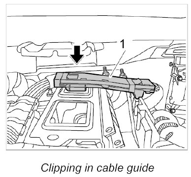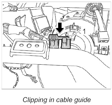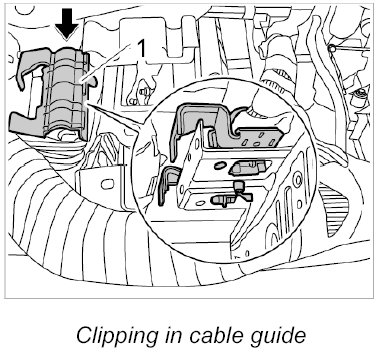 5. Clip in cable guide -1- at the right of the dashboard support.