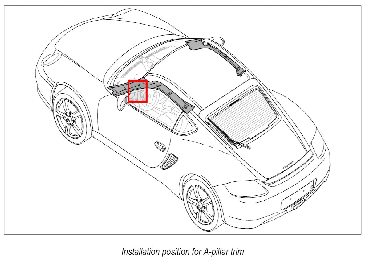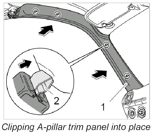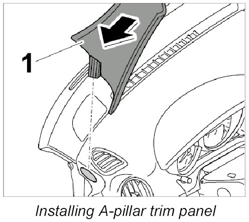 1. Insert A-pillar trim panel -1- at the side of the windscreen frame (transition point to dashboard).