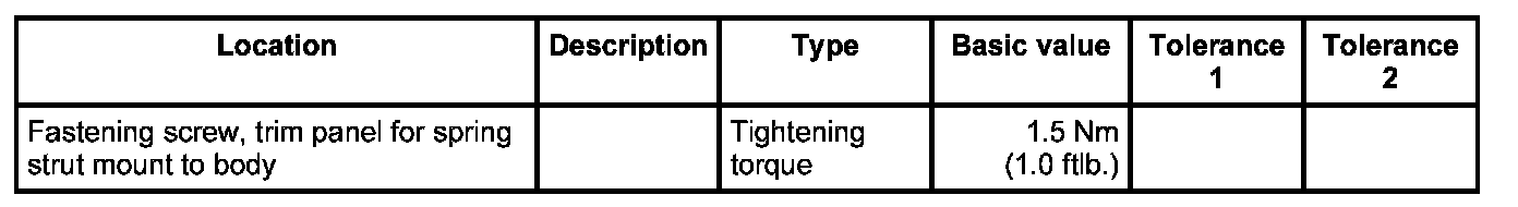 3. Align gap of trim panel for spring strut mount -2- to shelf and tighten fastening screws -1-. Tightening torque: 1.5 Nm (1.0 ftlb.)