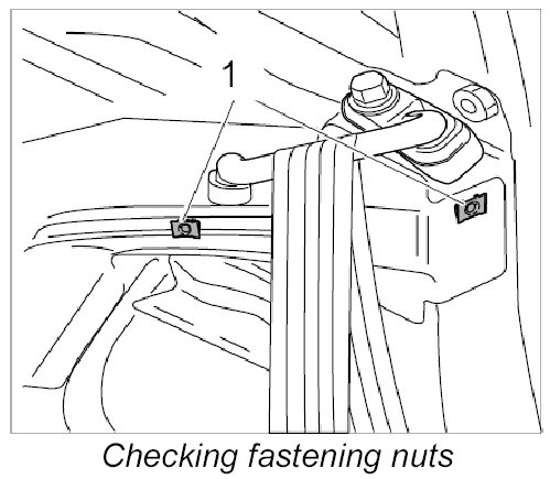 2. Check fastening nuts -1- and replace if necessary