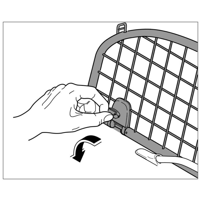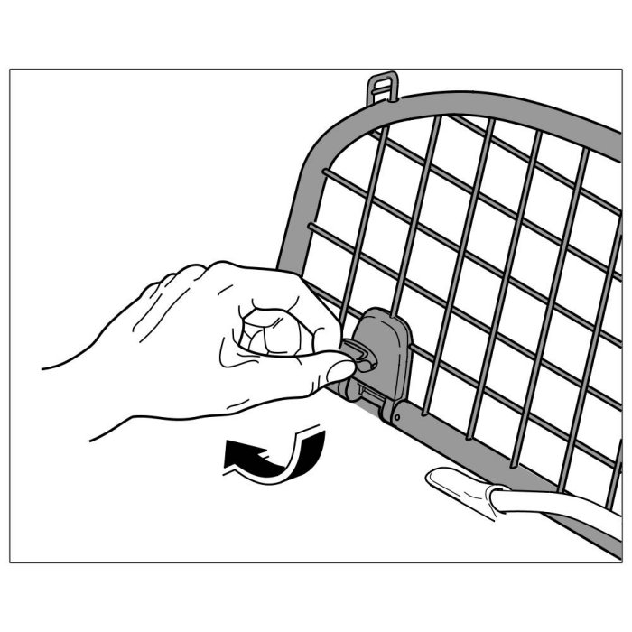 2. Lock the locking mechanism of the luggage mesh right and left in -direction of arrow-.