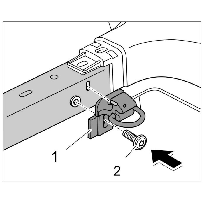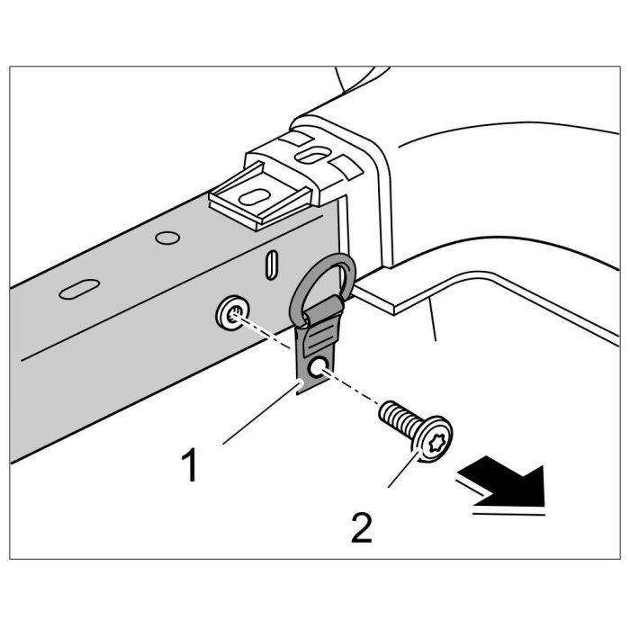 2. Unscrew fastening screw -2- and remove tie-down ring -1- right and left.