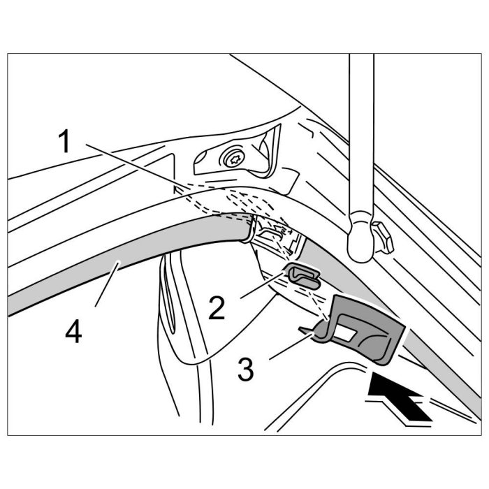 7. Clip trim -3- right and left into the C-pillar trim panel -4-.