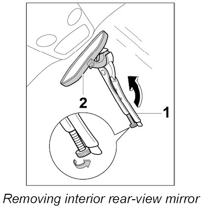 2. Turn the interior rear-view mirror -2- by turning the pliers -1- 90° anti-clockwise -arrow-. Then release the pliers from the mirror base.