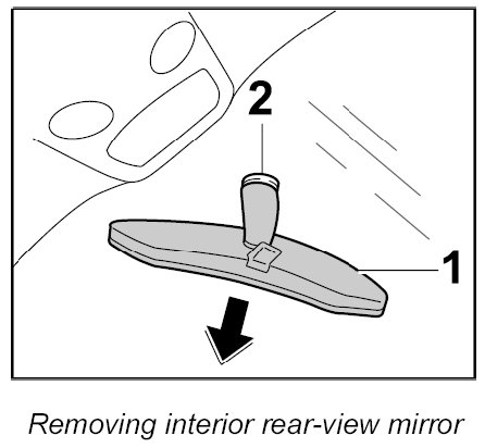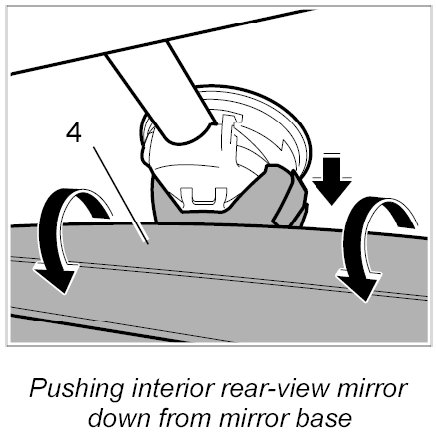 4. Fold interior rear-view mirror -4- downward and push it down from the mirror base.