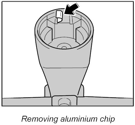 INFORMATION: Remove the small aluminium chip in the locking area -arrow- so as to ensure that the mirror can be re-fitted securely. If the mirror is being fitted for the second or third time, check the locking area for signs of wear and replace if necessary.