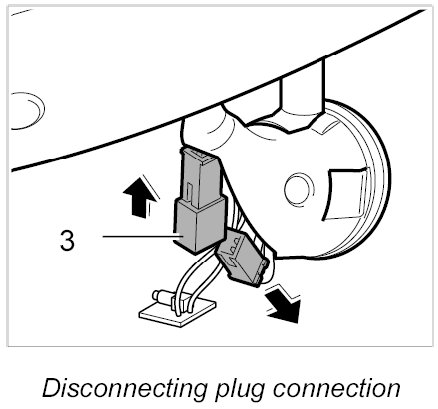 3. Carefully remove plug connection -3- from the mirror base and pull it apart.