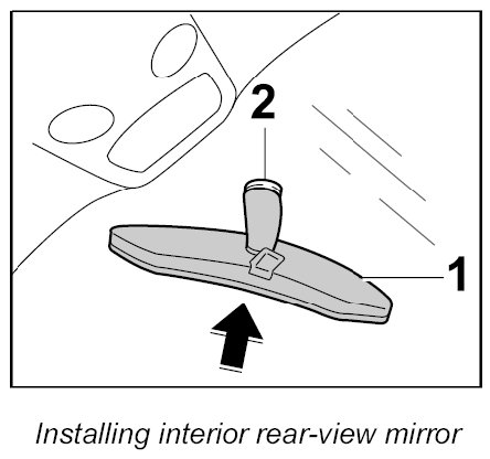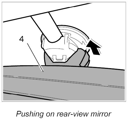 1. Push interior rear-view mirror -4- onto the mirror base from below.