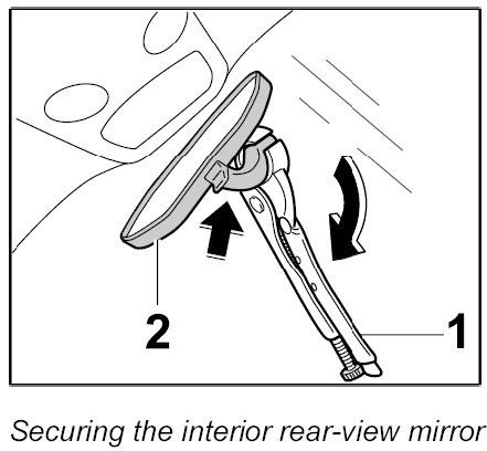 1. Turn the base of the interior rear-view mirror -1- 90° anti-clockwise and clip it on to the retainer plate -2- (-arrow-).