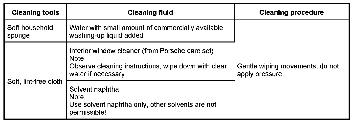 INFORMATION: It is possible to clean heavy soiling by selecting an option from the following cleaning tools and cleaning fluids: