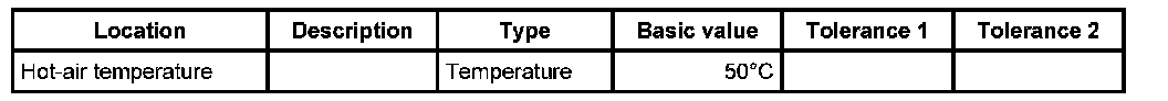 - The hot-air temperature must always be -> Temperature: 50°C.