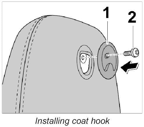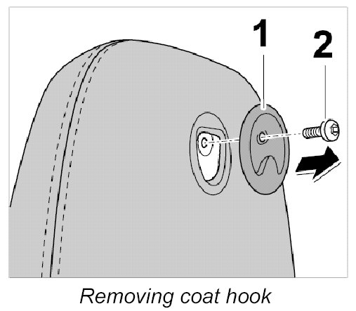 1. Unscrew fastening screw -2- and remove coat hook -1-.