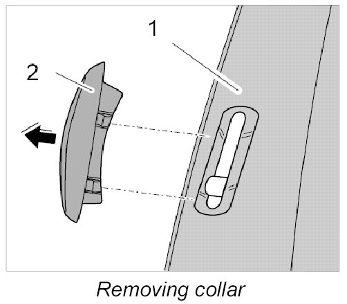 2. Insert a plastic wedge between the backrest cover -1- and the collar -2- and unclip collar.