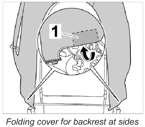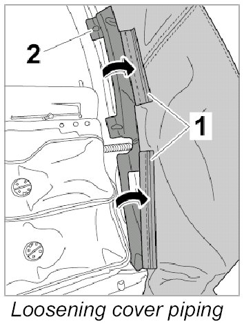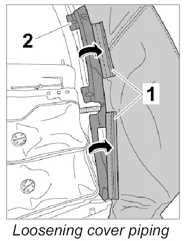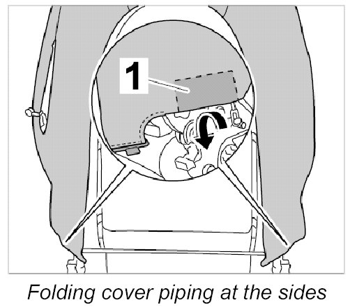5. Fold cover piping -1- at the sides in direction of arrow.