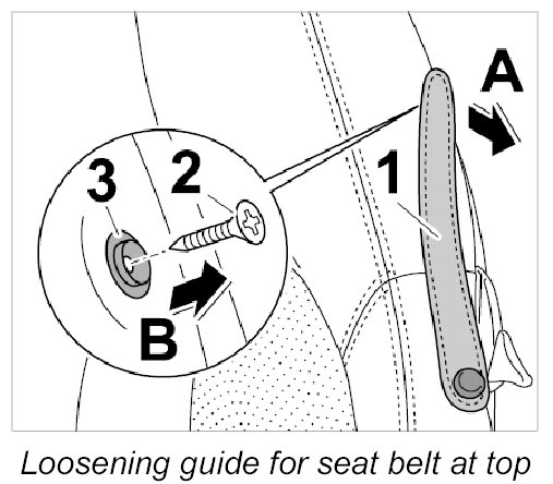 1. Remove guide for seat belt -1- at top -Arrow A-.