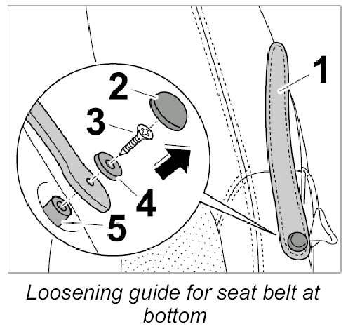 4. Remove guide for seat belt -1- and sleeve -5-.
