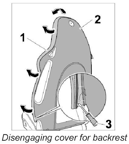 10. Press plastic strip -2- on cover for backrest -1- out of the fixing clips -3-.