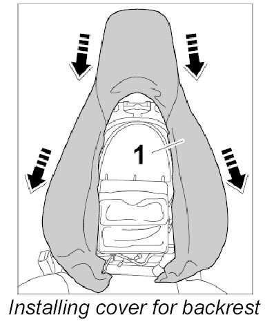 2. Pull on cover for backrest -1- and align with contour of padding.