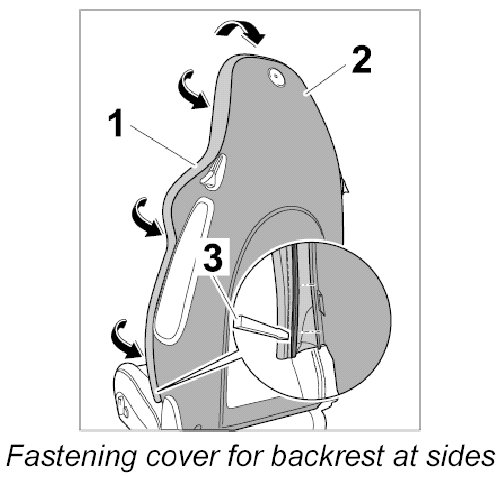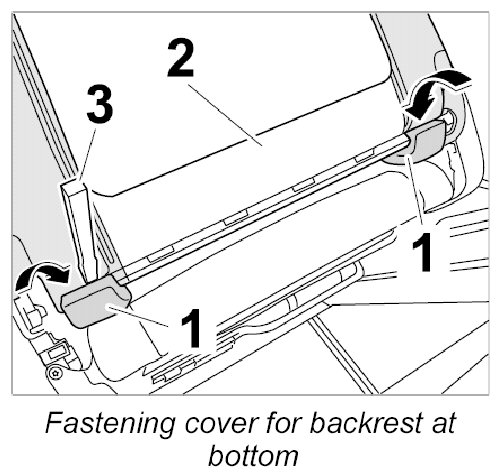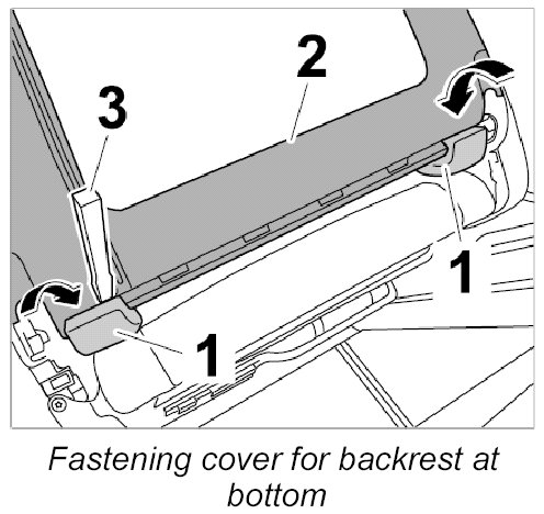 3. Press plastic strip -2- on cover for backrest -1- into the fixing clips -3-.