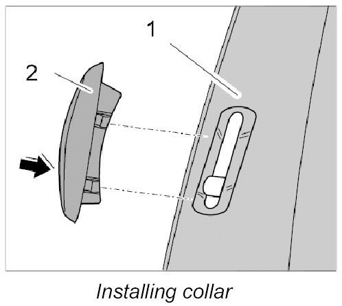 12. Position collar -2- on the backrest cover -1- and press in until it clicks into place.