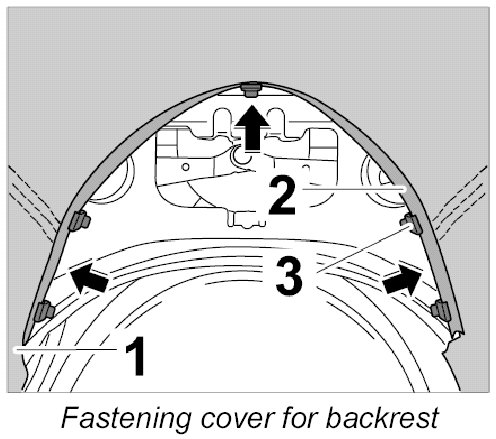 4. Press plastic strip -2- on cover for backrest -1- into the fixing clips -3-.