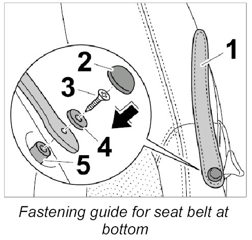 1. Position seat-belt guide -1- with sleeve -5- with the aid of the marking on the backrest cover.