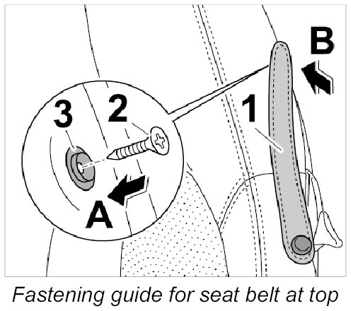 5. Press seat-belt guide -1- into push button -3- at top -Arrow B-.