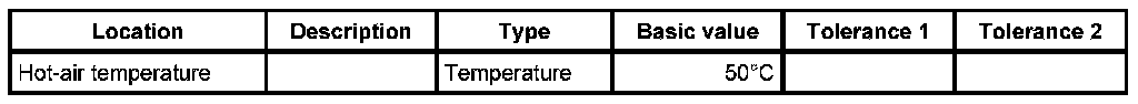 - The hot-air temperature must always be -> Temperature: 50°C.