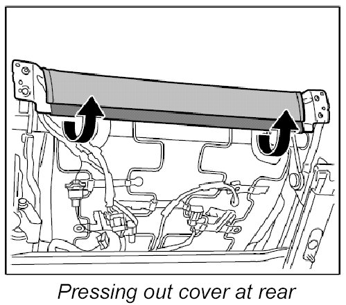 1. Press cover piping at rear carefully out of the seat frame using a screwdriver -arrows-.
