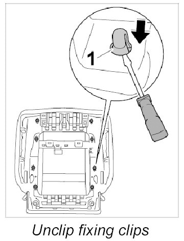 3. Unclip fixing clips -1- with a screwdriver.