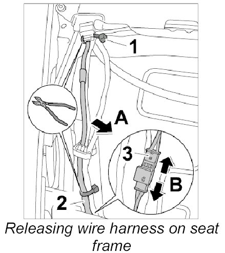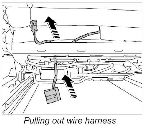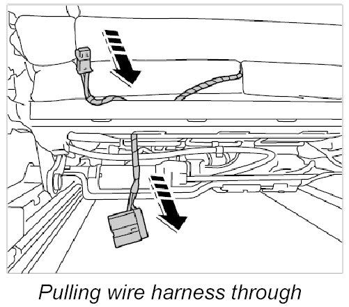 7. Pull wire harness out through the seat frame.