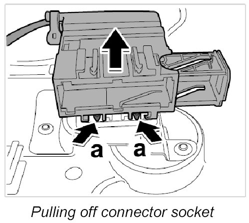 4. Release connector socket -arrows a- and pull out of holder.