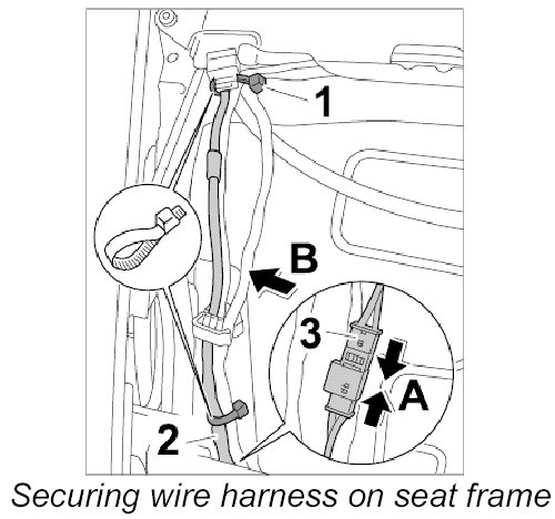 1. Pull wire harness through the seat frame.