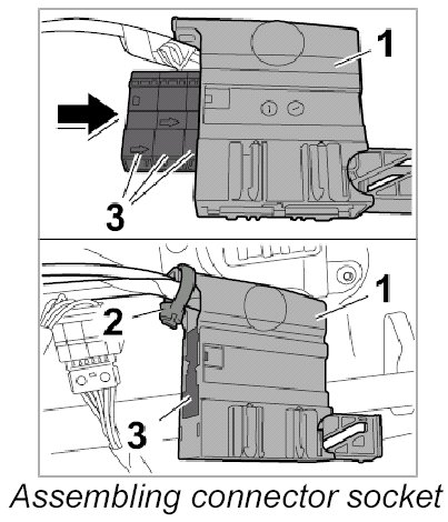 4. Press the three individual connectors -3- into the connector socket -1- until they engage firmly.
