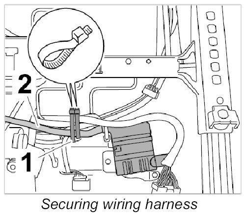 7. Secure wire harness -2- with new tie-wraps -1-.