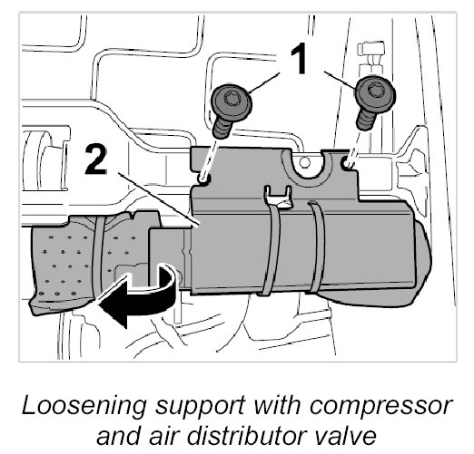 5. Unscrew fastening screw -1- and remove air cushion control valve -2-.