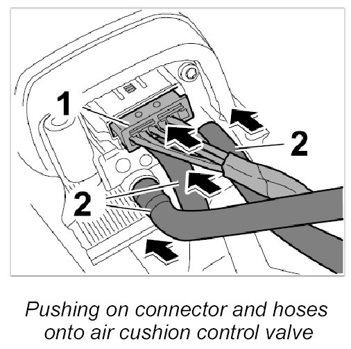 2. Push on the three hoses -2- onto the air cushion control valve.