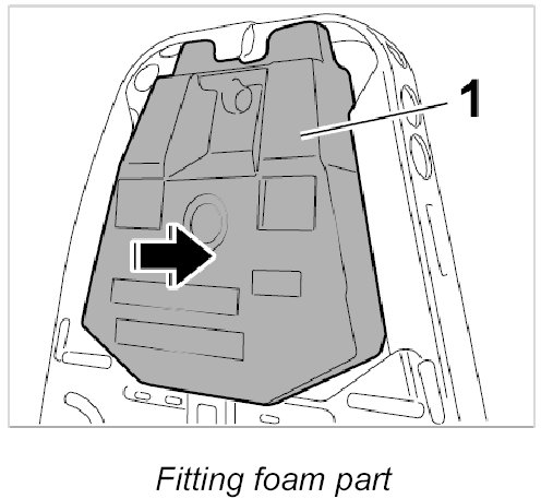 - Make sure that the hoses are not pinched. Insert hoses exactly into the cut-outs on the foam part.