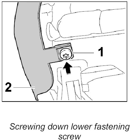 2. Unscrew lower fastening screw -1- out of the cover -2-.