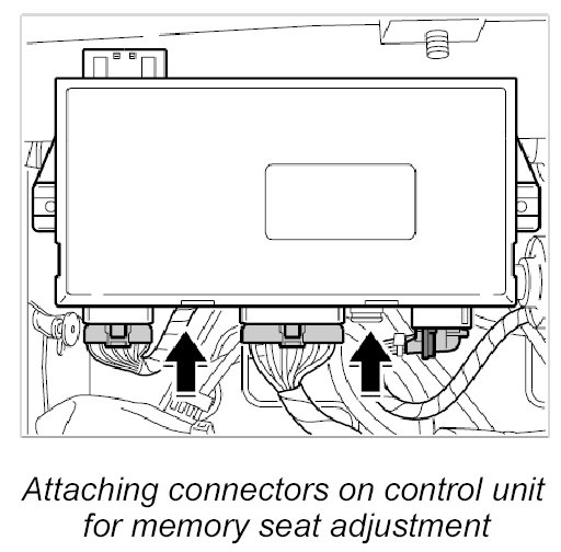 1. Attach the three connectors on the control unit for memory seat adjustment until they are felt to engage.