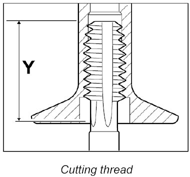 - While pressing in the base thread, a noticeably larger amount of force is required on the screw-in tool to form the internal thread. Pressing is finished when the screw-in tool can be turned further more easily.