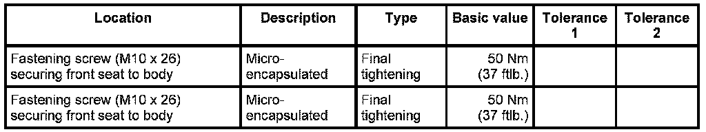 - Always replace fastening screws for the front seat after customer service and reworking.